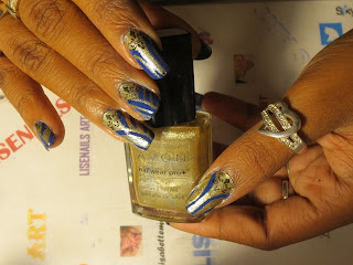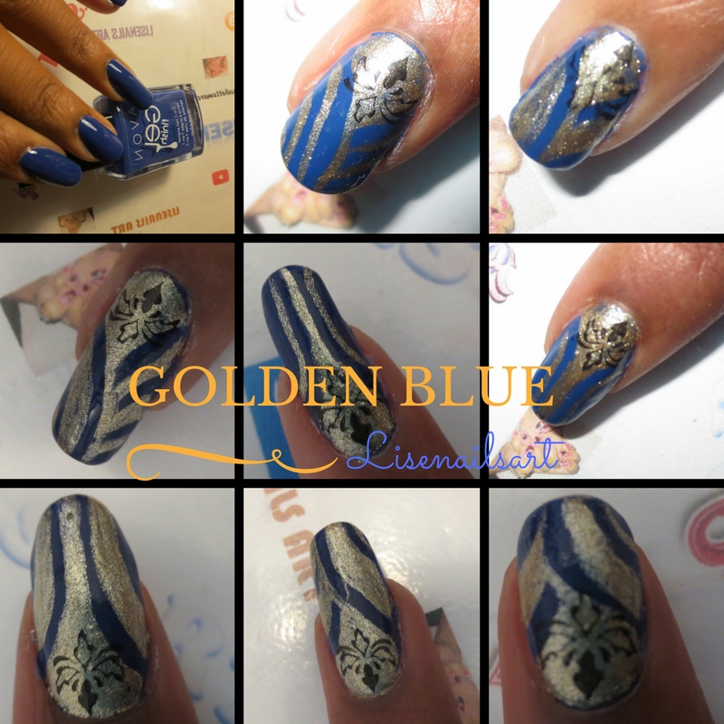 C'est un nailart un peu girly que j'ai appelé Golden Blue en français Bleu d'or.